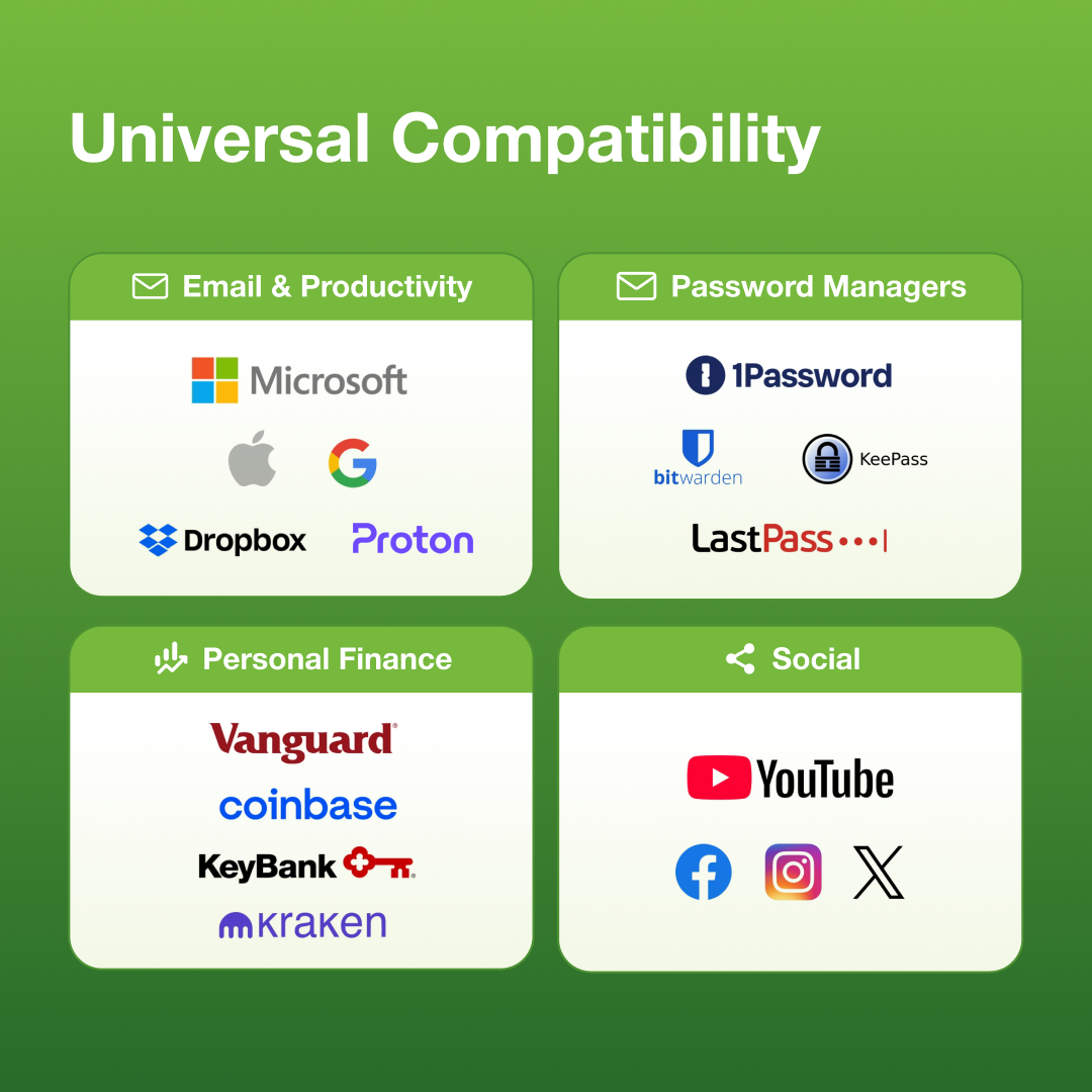 Log in securely from any compatible device including desktop, laptop, or mobile. One key protects all your accounts from phishing and unauthorized access.